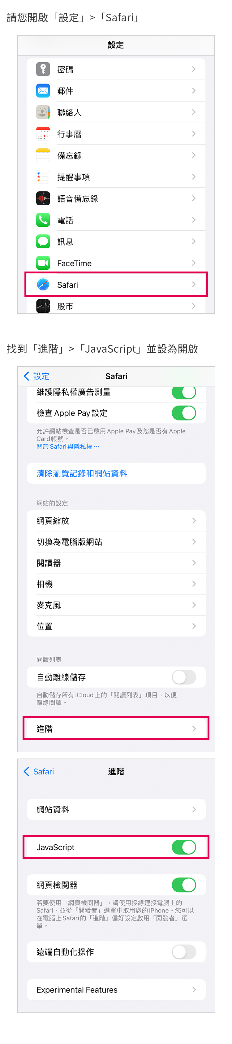 從「設定」 > 進入「Safari」